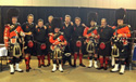| November 2013. Remembrance Day Parade, Shirley John Cadman (Pipe Major), Jimmy Hunter, Mike Hope, Keith Murphy (Drum Major), Carl Gray, Rebecca Giles, Peter Cound, Dave Mellor, John McGee, Andy Walker 135Kb - Photo by Jenny Mellor | |