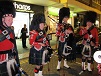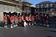 | July 2012. Olympic Torch Relay - Solihull Performing in Mell Square: John Cadman (Pipe Major), Jonathan Prior, Simon Hayward (Bass), Dave Mellor, Peter Cound, Andy King, Alan Kitchen ('s spats - very obscured - obviously circles were a different shape at his school), Alan Pollock, Craig Donaldson, Luke Donaldson, Tom Taverner (Leading Drummer), James Cadman 561Kb - Photo by Margaret Mellor | |