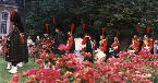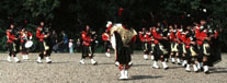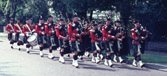 | August 1977. Soiron, Belgium Forming up on lawn - Pipers: Dave Mellor, ?, Neville Cross, Dave Alton Drummers: Dave Nelson, Martin Haines, Neil Collins, John Fear, Colin Poole, Andy Hill 72Kb