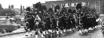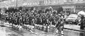| November 1979. Armistice Day Parade, Shirley, Solihull Pipe Major's file: Chris Hughes (turning to signal end of tune), Pete Taylor, John Maybury, ?, Andy Hill Next file: John Dalman, John Henderson Dick, Mike Hope Next file: Rick Stewart, Mike Hope, Robin Lackey, Ron Whelan, Dave Nelson, Martin Hope Next file: Richard Court, Dave Mellor, Chris Jervis 104Kb