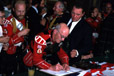 | August 1977. Peppinster, Belgium Reception in Town Hall: Betty Cross, John Fear, Neville Cross (signing), Ted Catch, Jim Galeford, Ron Jervis 317Kb