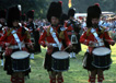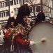 | March 1981 Mainz, Germany During parade in Mainz: Mary Stewart (dancer), Martin Hope (side drummer), Colin Poole (bass drummer) 55Kb