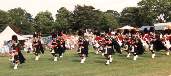 | August 1989. Fete, Tiddington, Stratford-upon-Avon Standing: Pete Taylor, Keith MacKenzie, Gary Mellor, John Henderson Dick, Chris Hughes (Pipe Major), Allan Baxter, Stewart Hunter (Drum Major), Dave Mellor, Kevin Minton, Andy Hill, Jon Hughes (Leading Drummer), Mike Hope Kneeling: Emma Carter, Jimmy Hunter, Paul Webb, Jim Galeford (Bass), Denis Carter, Albert Hope, Joanne Mellor, Pauline Carter 297Kb