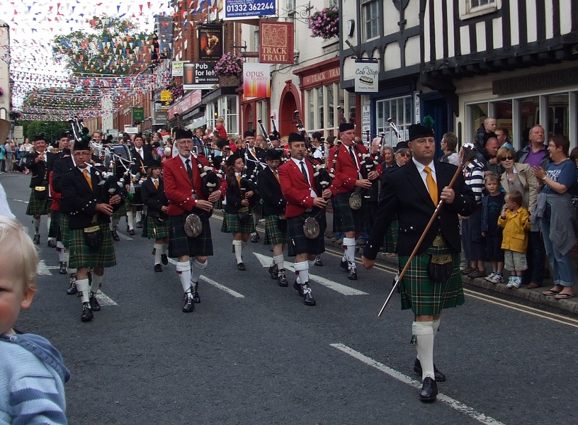 | July 2010. Highland Gathering, Ashbourne, Derbyshire During Parade through Town: Shirley Pipe Band and Birmingham Irish Pipes & Drums 254Kb | |