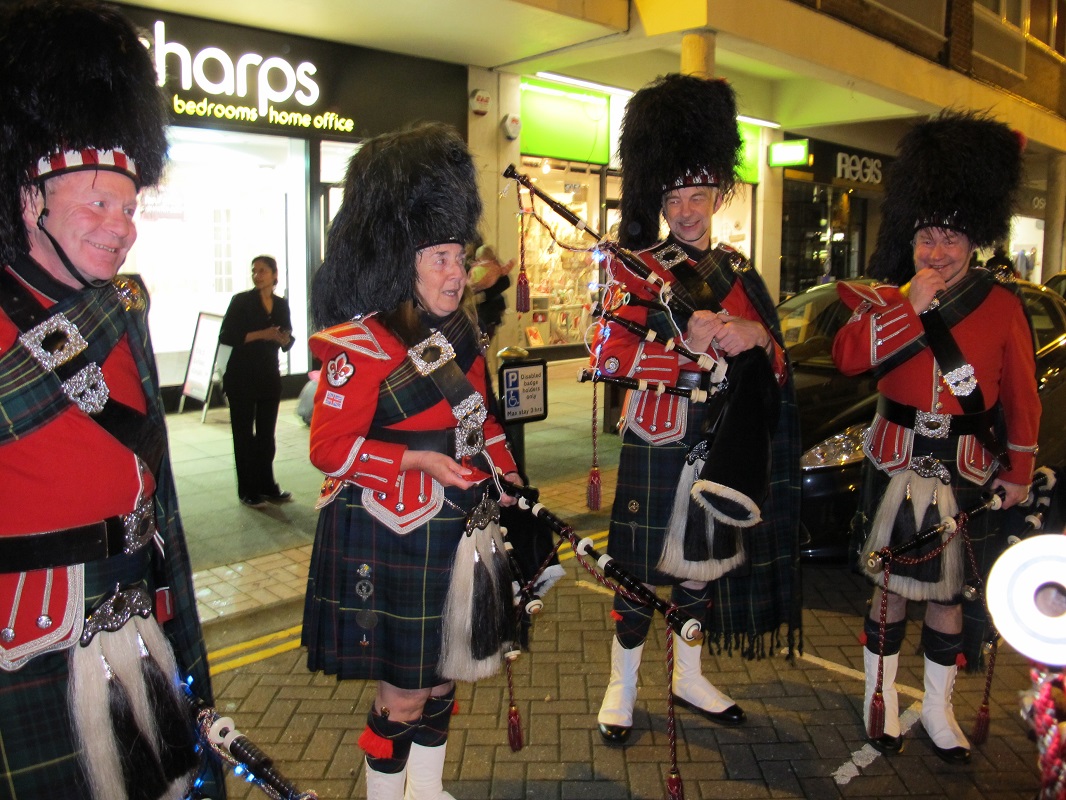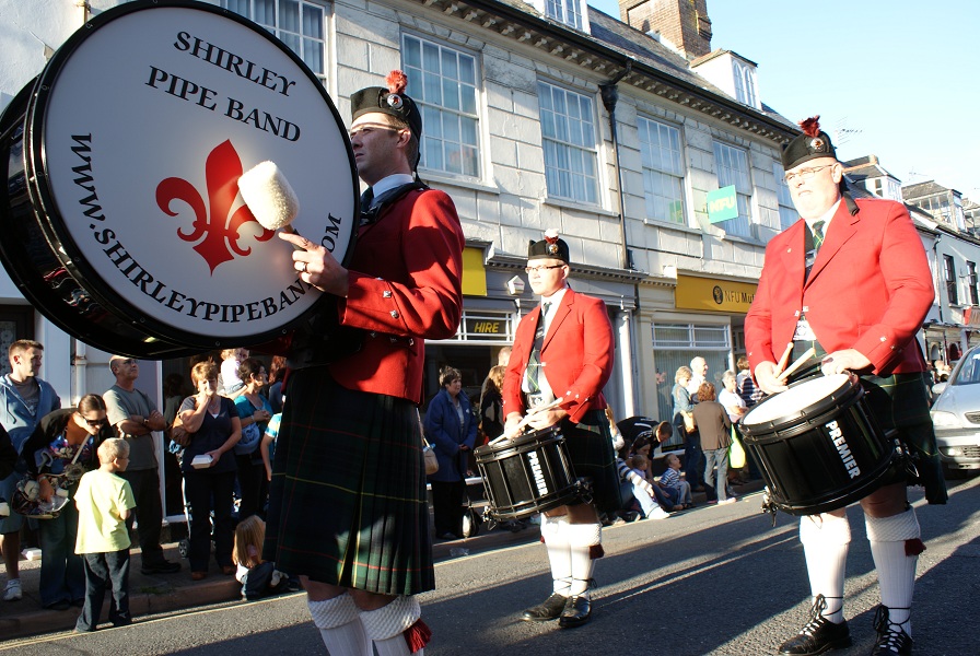 | September 2010. Bideford Carnival, Devon First file: John Cadman (Pipe Major), Michael Hope, Andy King Second file: Phill Taverner, Peter Cound (first appearance as piper) Third file: Dave Mellor, Allan Baxter 305Kb - Photo provided by Amanda McCormack at Bideford People | |