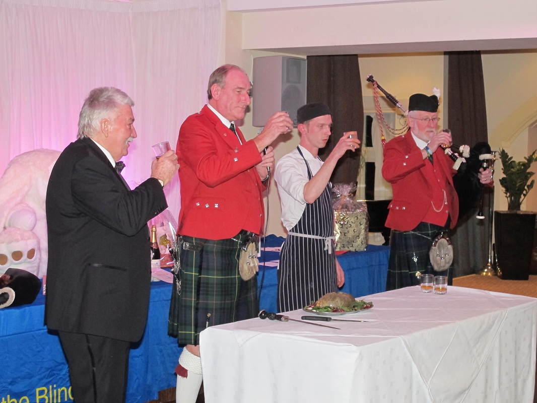 | January 2012. Burns Night - Cadbury Country Club, Congresbury, Somerset Toasting the Haggis:Martin (Organiser), Allan Baxter (Toaster), Chef, John Cadman (Pipe Major) 248Kb | |