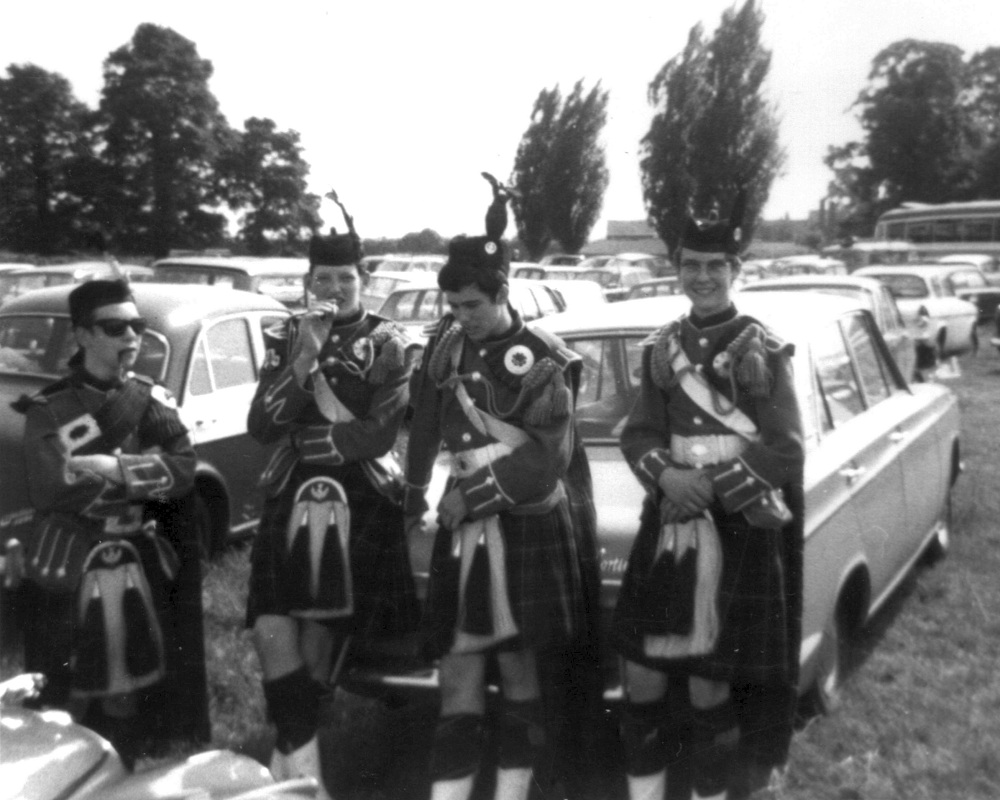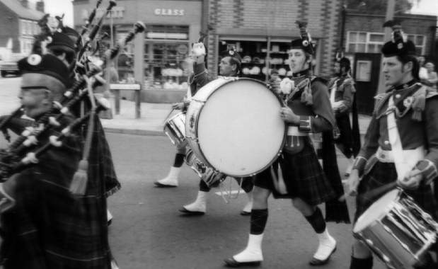 | 1973. Stratford-upon-Avon Carnival Mick Mason (Drum Major) Pipe Major's file : Chris Hughes, Albert Hope, Roger Catch, Jon Hughes, ?, Robert (Lofty) Phillips Next file : John Dalman, ?, ?, Steve Catch Next file : Steve Eccles, Neville Cross, John Benney, John Fear Final file : Robin Lackey, ?, Bob Fear, Martin Hewins, ?, Colin Poole 71Kb