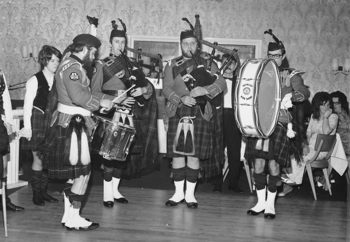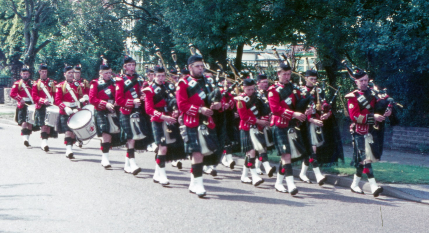 In the 1970s we changed our name from the Shirley BP Guild Pipe Band to Shirley Pipe Band. We gained our appetite for overseas trips with a series of bookings in Auxerre in France and Soiron in Belgium.