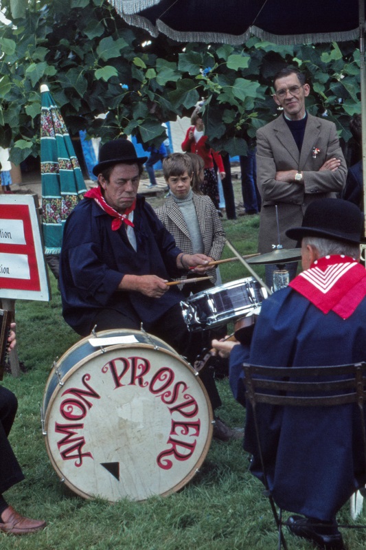 | July 1978. Cleeve Prior, Worcestershire Bandsmen, left to right: Richard Court, John Hill, Tony Fitzgerald, Mike (or Albert?) Hope, Ron Whelan, Chris Jervis (?), Neil Collins, Andy Hill, Martin Haines, Dave Mellor, Jim Galeford, Steve Catch (bass), Mick Mason, Chris Hughes, Martin Hope, Steve Thomas, Peter Hope, Robin Lackey-Grant, Neville Cross, John Dalman Dancers: to be confirmed 261Kb